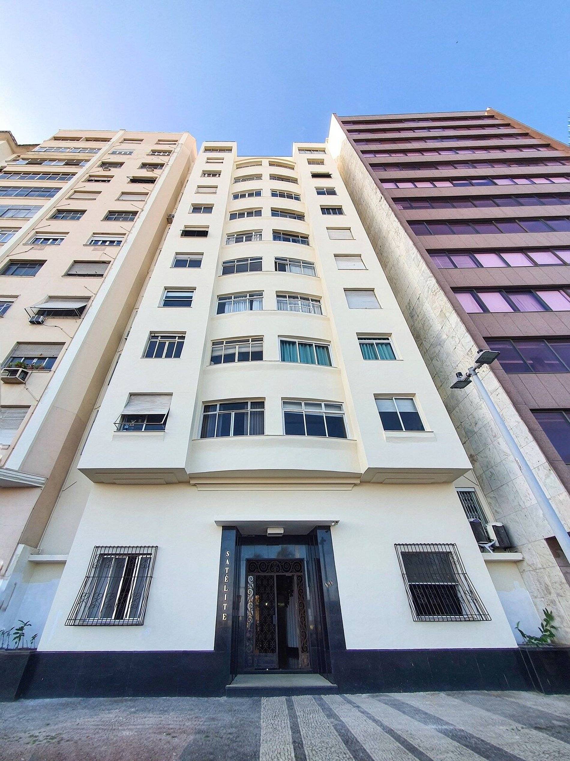 Edifício suntuoso de frente para o mar.